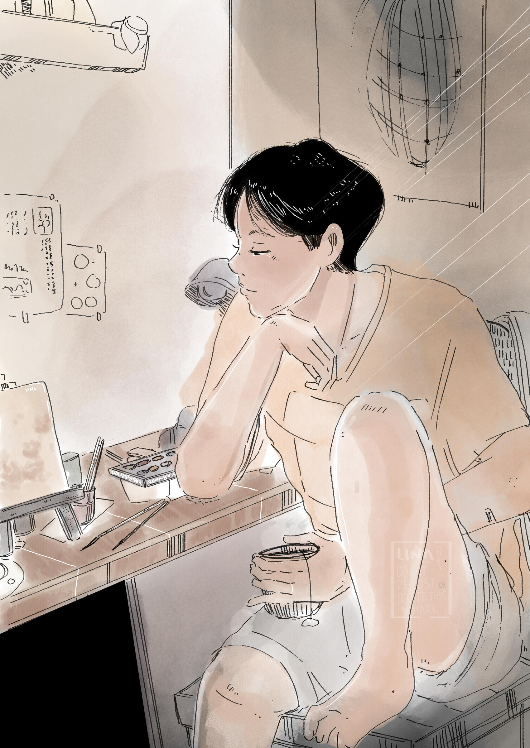 ▴ If violated, artist (Lina) has right to demand compensation with the amount they find sufficient.V. Client can't re-sell or monetize the artwork, that is prohibited.VI. Client can share the artwork on their socials as long as artist (Lina) is credited on the work.